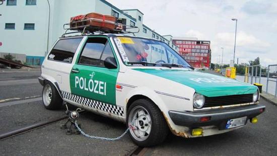 现年33岁的机械师凯姆(Keim)来自法兰克福市(Frankfurt),5年前他购买了一辆23岁“高龄”的大众Polo汽车,并开始着手对其进行改造。凯姆表示,他在这辆汽车的每一个细节上都“倾注了心血”。可是,改造完的车无论是名字还是涂装,都会使人第一时间以为这是一辆警车。凯姆将发动机盖和前车门涂成了德国警车特有的绿色,并在上面写上“Polozei”,这与德语中“警察(Polizei)”一词极为相像。