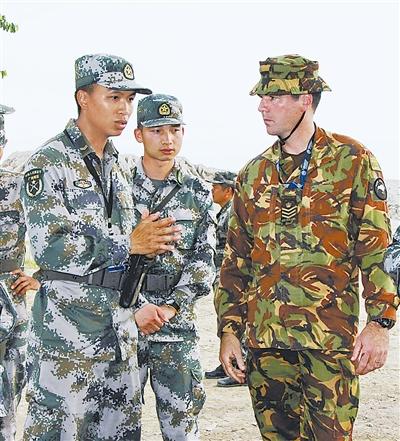 演练中,潘孔彬(左一)为外军翻译。易 俊摄