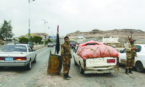 当地时间4日,在也门首都萨那,安全人员在通往美国大使馆的路上设置检查站检查过往车辆。