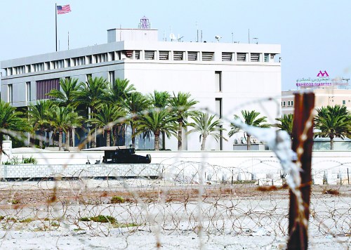 4日,美国驻巴林使馆外道路封闭,戒备森严。