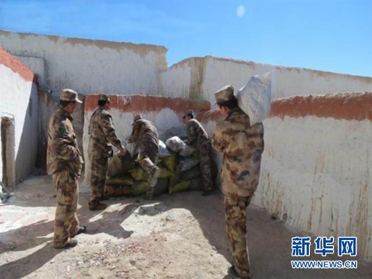 官兵向扎西岗寺院赠送焦碳,确保僧人们过一个暖冬