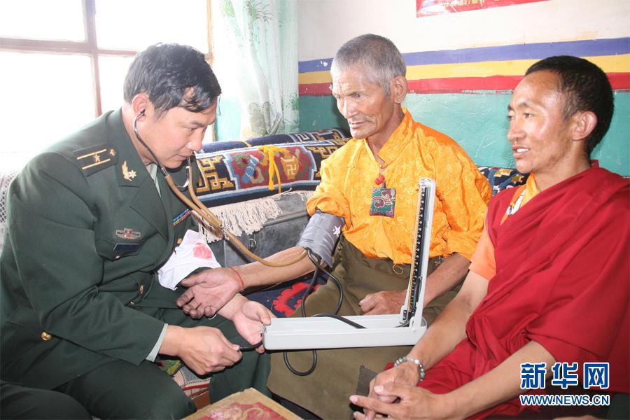 哨所军医邹平为扎西岗寺庙僧侣检查身体