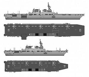 日本新型22DDH级准航母(上)与现役的“日向”级直升机航母(下)对比图