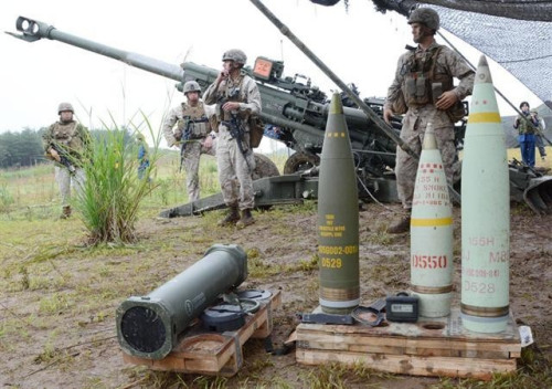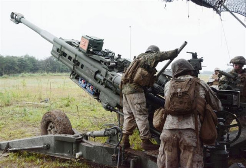 当天,美海军陆战队队员迅速装填了155毫米榴弹炮,随着口号演示了发射前的动作等。训练期间将有约170人参加,使用约450枚榴弹。