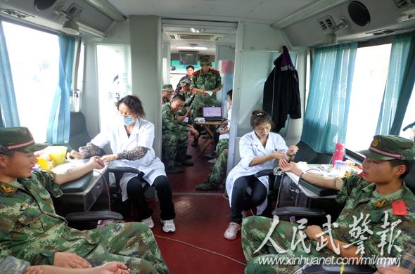 献血是爱,献血更是一种光荣。据了解,参加献血的30余官兵共献血12000毫升,这也是该大队今年组织第3次献血公益活动。(张庆峰 许强)