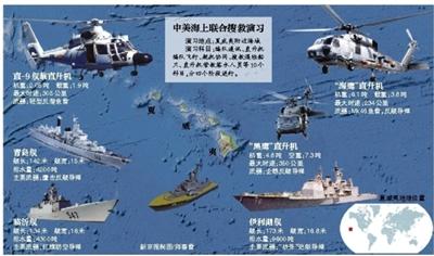 在9日开始的演习中,中方参演的兵力主要是青岛舰、临沂舰,还有一架直-9舰载直升机。美国海军派出了导弹巡洋舰伊利湖舰,一架F-60海鹰直升机,还有一架UH60黑鹰直升机。美方还派出一艘模拟失事商船参加演习,总计兵力是4艘军舰、3架直升机、一千多名官兵。