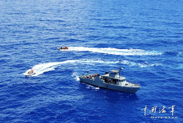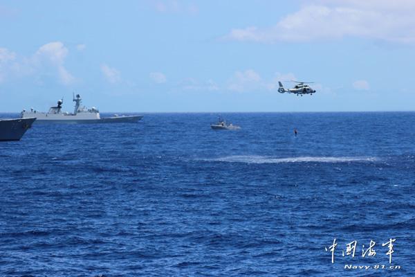 在离开珍珠港后,中美两国海军在夏威夷附近海域举行了海上联合搜救演习。