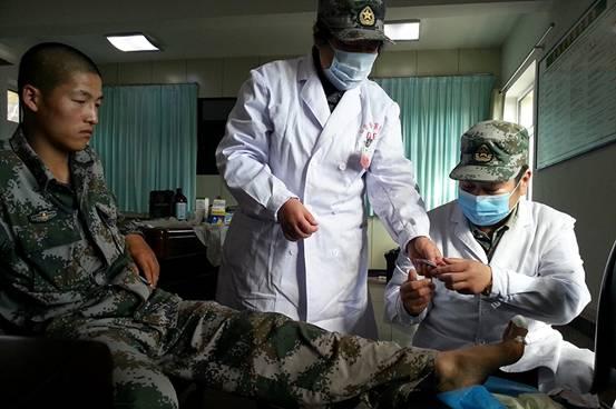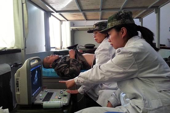 一下车,大家顾不上休息,先着手摆放好医疗器械,为战士们进行抽血化验、量血压等各项体检。直到太阳最后一抹余辉消失在天际,连队每一名官兵才完成了体检。医疗队队长魏海龙看着化验员于坤送来的三连官兵验血报告,紧紧的皱着眉头,三连的战士驻地偏远,因为常年蔬菜供给困难,身体里血红素HGB偏高,维生素普遍比较缺乏。