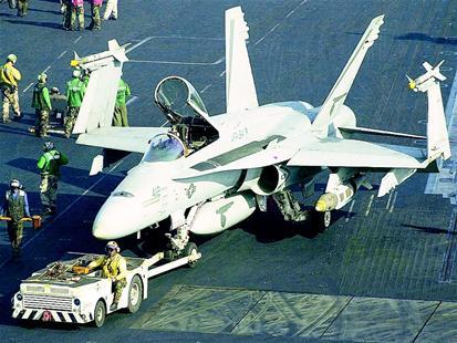 二是攻击机。航母想有效地打击岸上或海上目标,需要配备一定数量的攻击机。目前美国航母上的战斗机和攻击机已合二为一,例如F/A-18“超级大黄蜂”,它既可进行空战,也可对地对海攻击。