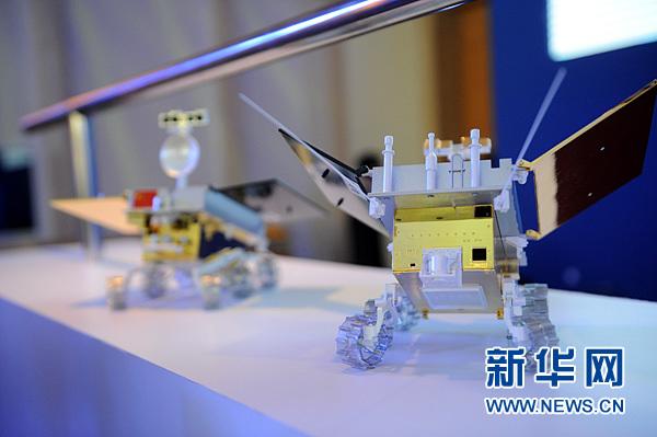 继成功实施嫦娥一号、嫦娥二号任务之后,我国将于今年12月初,在西昌卫星发射基地发射嫦娥三号探测器,并拟开展嫦娥三号月球车全球征名活动。9月25日,嫦娥三号月球车全球征名活动新闻发布会在北京举行。图为发布会现场摆放的月球车模型。新华网 陈竞超 摄