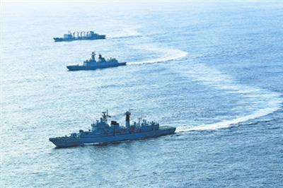 印度洋,哈尔滨舰、绵阳舰和微山湖舰刚完成亚丁湾护航任务,正日夜兼程在归国顺访的航程上;以新型两栖登陆舰井冈山舰为核心的护航编队正在海盗出没的亚丁湾警戒。南太平洋,兰州舰、柳州舰和鄱阳湖舰组成的舰艇编队正穿行于南太平洋岛群之间。泰国湾,和平方舟医院船正在开展人道主义医疗服务……