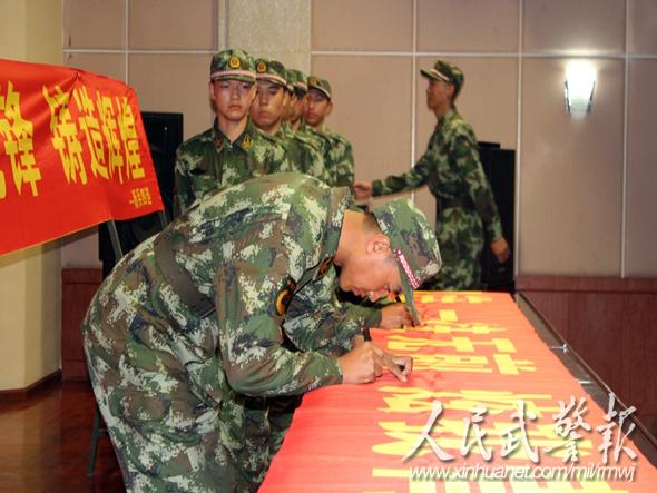 黄金武警某部入连仪式:战斗口号横幅上签名(图)