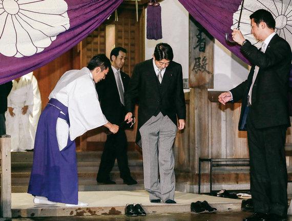 2012年 10 月 17日,时任自民党总裁的安倍晋三(右二)参拜位于东京的靖国神社。