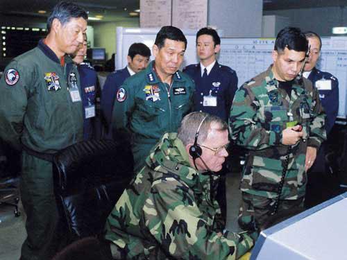 2006年3月,美日高级军官在监视两军联合军演情况 (资料图)
