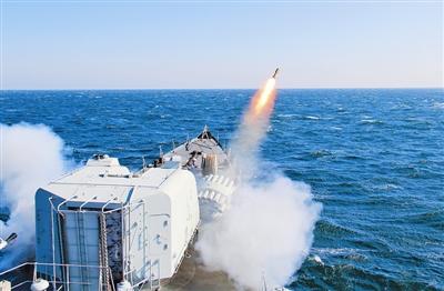 2月9日,北海舰队某驱逐舰支队大连舰发射舰艏火箭深弹对“敌”打击。连日来,该支队组织舰艇编队挺进陌生海域,开展主炮对岸射击、副炮对海射击等实战化课目训练,锤炼部队打赢能力。(郑长路)