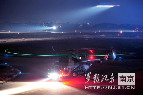 中新网2月12日电 据中国军网记者频道报道,2月11日晚,南京军区某陆航团组织部队开展夜间飞行训练,提升部队战斗力水平。(肖庆明)