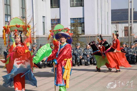 临近元宵佳节,为丰富官兵和驻地群众的节日文化生活,济空导弹某旅官兵与驻地文艺小分队联合举办了一场“龙腾狮跃闹元宵”活动。广大官兵和人民群众通过精彩的文艺节目,共同抒发爱国情怀,祝愿祖国在新的一年里繁荣昌盛。 (荣 波 摄)