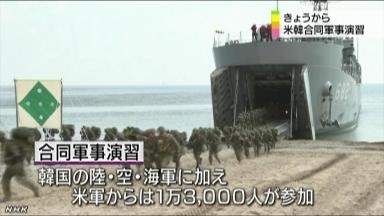 报道称,美韩两军将从2月24日至4月18日举行联合军事演习。本次演习为美韩两国每年定期举行的军演中规模最大的一场。韩国海陆空军均参加,美军也将部署13000人到韩国国内和其他地区进行军演。本次演习除确定各种预想的作战计划之外,部队的战斗演习也将按计划进行。