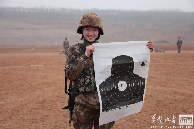 这位来自山城重庆的20岁辣妹子名叫郭丹,是该师红二团女兵班的一名上等兵。“我跟其她许多女孩子不一样,我从小就喜欢枪。来到部队后,一听到要打靶就兴奋,我喜欢那清脆的击发声,也喜欢报靶时的期待心情。”对95式自动步枪的喜爱,使她在日常瞄靶训练时格外认真,也让她特别珍惜团里打靶的机会。“我相信只要练好基本功,就一定能正中靶心。”(何睦、刘健)