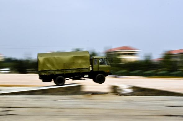 武警部队卡车训练飞越障碍 挑战复杂路况(图)