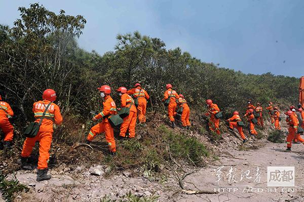陆军第14集团军立即启动森林防火救灾预案,所属某防空旅和某炮兵旅森林防火专业应急分队共600人,携带风力灭火机、灭火水枪、油锯和灭火弹等专业扑火工具,于8日21时55分出发,星夜赶至火场。火灾现场坡陡林密,消防车和工程机械无法抵达一线,灭火全靠人工作业。官兵分为三路,一路负责压制火势,一路开挖隔离带,另一路往返于5公里外的水库运送水和救灾物资。今天下午,某防空旅副旅长睢秀东喘着粗气告诉记者,官兵到火场就投入战斗,已10多个小时没休息,但仍斗志昂扬,火灾不灭不下山。某炮兵旅50名官兵负责向火场运水,5公里山路1个小时才能送一个来回。官兵的迷彩服湿了干,干了又湿,肩膀肿了,脚底破了,但没人掉队。