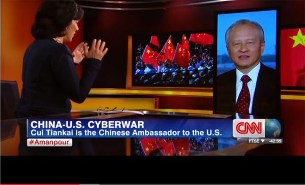 美国宣布所谓“起诉”5名中国军官后,中国驻美大使崔天凯20日表示,美方某些人自认占有道德高地来指责别人“让人吃惊”,并要求美方就针对中国的网络攻击做出解释。