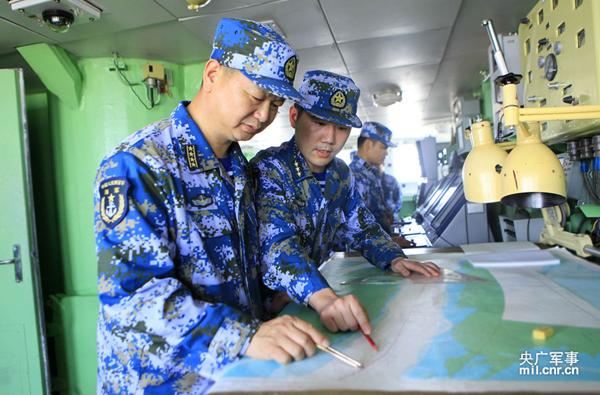 宁波舰指挥员确定航行方案 王志鹏摄