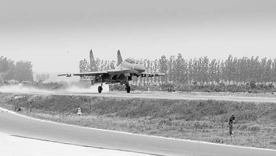 我军三代战机在高速公路上着陆成功。 李铁钢 崔文斌 杨存摄