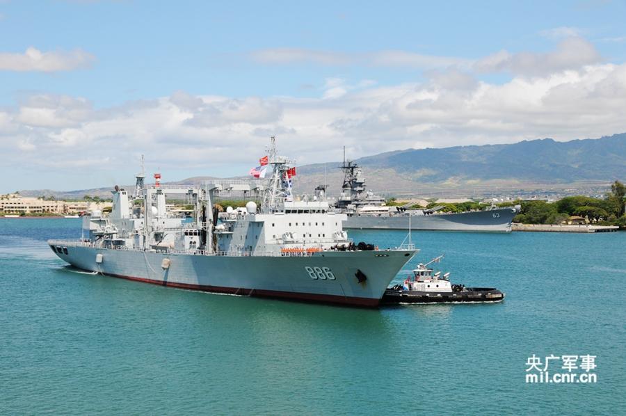 综合补给舰千岛湖舰进入夏威夷港。李荣磊 摄