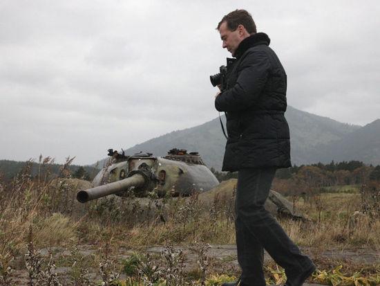 2010年11月,时任俄罗斯总统梅德韦杰夫视察“北方四岛”。(资料图)