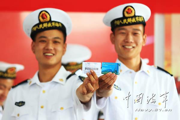 雷达兵李铠铖和王永鹏高兴地展示他们领到的医疗卡。代宗锋 摄