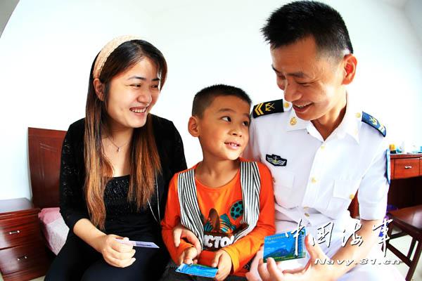 雷达操纵班班长夏全国将领到的医疗卡带回家后,一家人喜笑颜开。代宗锋 摄