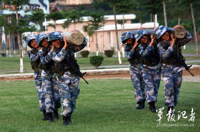 海军某陆战旅两栖女子侦察队队员,入伍第一天起,她们牢记这样一句话:战场只有胜负之分,没有男女之别。经过几年摔打磨砺,她们个个身怀绝技,刀枪剑棍样样精通,被外界誉为“两栖霸王花”。