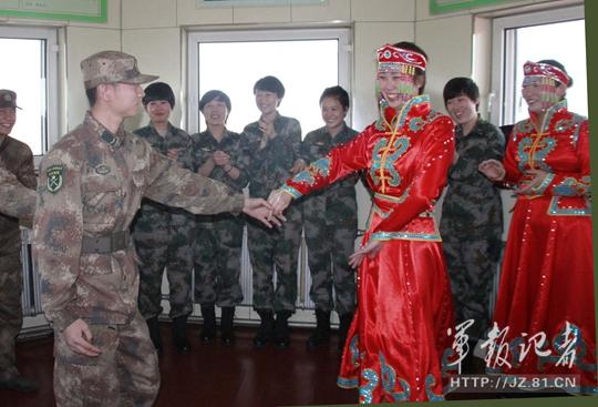 在边防5连执勤点,四级军士长王尚金在训练中右手拉开一个2厘米长的口子,张幼沂看到后,除了将随身携带的消肿药赠送他,还特意为王尚金“秀”了她自创的舞蹈《咱当兵的人》。