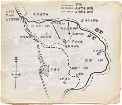 1915年的伊普尔战场形势图。当年4月22日,这里成为第一次毒气战的战场。