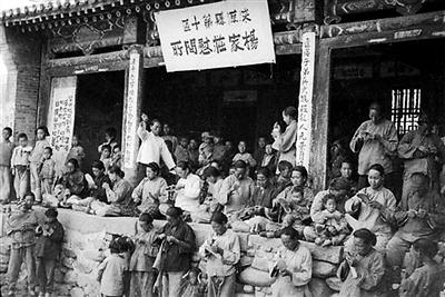 河北涞源妇女为前方战士做军鞋。
