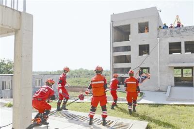 中国国际救援队通过联合国复测 演练索降营救(图)