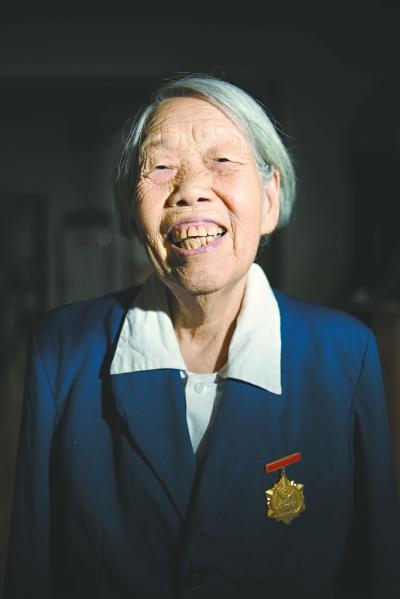93岁抗战老兵魏瑞珍,原汉阳区人大常委会副主任。女八路魏瑞珍虽年纪近百,但身体健康,耳聪目明,一口健康好牙 见习记者任勇 摄