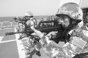 运城舰护航间隙训练实弹射击 动用狙击步枪(图)