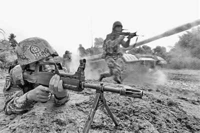 南京军区演练坦克引导步兵破障攻击清剿(图)