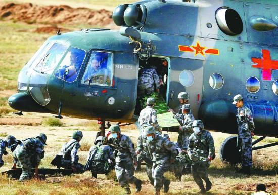 9月25日,代号为“卫勤使命-2014”的解放军信息化条件下实兵对抗卫勤保障演习在北京军区朱日和训练基地展开。演习首次在信息化条件下实兵对抗中运用卫勤信息装备,实现动态的战伤人员精确定位、伤势判断、精准统计,以及迅速实施战地救护、战场伤员接送、战地医院抢救、远程运输、后方接应的无缝对接。演习为未来战争中卫勤力量编成配备、卫勤力量运用、卫勤救治流程等提供了科学依据。宋吉河摄