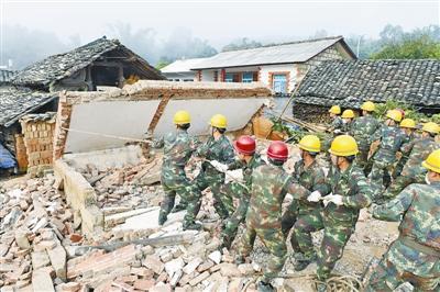 二炮官兵在云南景谷地震灾区拆除危房(图)