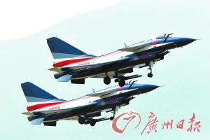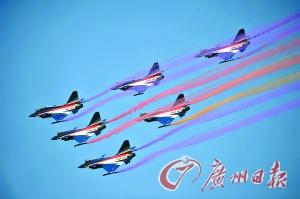 中国空军“八一”飞行表演队盛装表演。