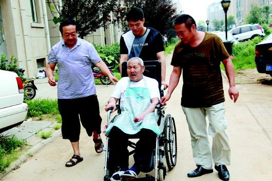 坐在轮椅上的郝兴泉和他的儿孙们。