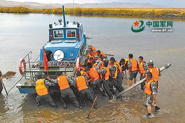 中国陆军艇队巡防中俄界河搁浅 官兵肩扛手推(图)(2)