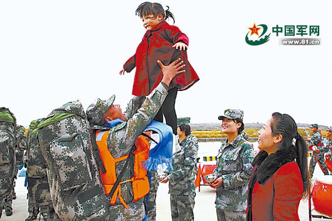 来队探亲的军嫂和孩子也到码头迎接回家的水兵。