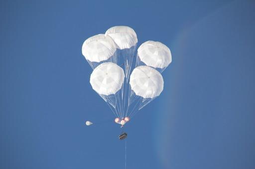 某型投物伞在空中完美绽放。