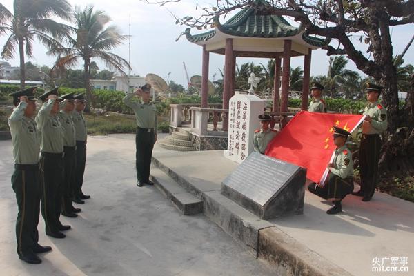 南海三沙边防举行红色登岛仪式 重描主权碑(图)(3)