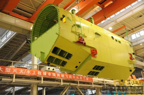 2014年12月29日,大型灭火/水上救援水陆两栖飞机AG600飞机中机身顺利下架,标志着AG600飞机开始进入整体装配阶段。AG600飞机是国务院立项批复的三个大型民机项目之一,也是中航工业重组成立后第一个立项的民机型号。这款机型是当今世界上最大的一款在研水陆两栖飞机,选装4台WJ6发动机,起飞重量53.5吨,20秒内可一次汲水12吨,水面起降抗浪高度达到2米。具有执行森林灭火、水上救援等多项特种任务能力,可执行海洋环境监测、资源探测、客货运输等任务的需要。
