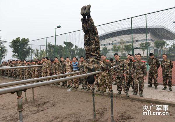 重庆消防武警培训军体教练员:双杠上倒立(组图)